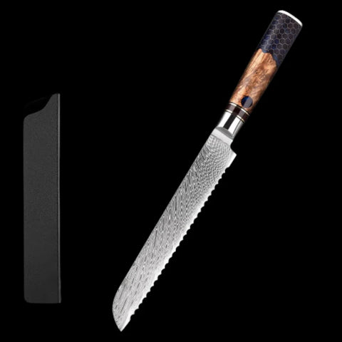 - Known for its stunning patterned blade and high-quality steel, this bread knife is both a functional tool and a work of art. The razor-sharp edge makes it ideal for cutting through larger loaves of bread with ease.