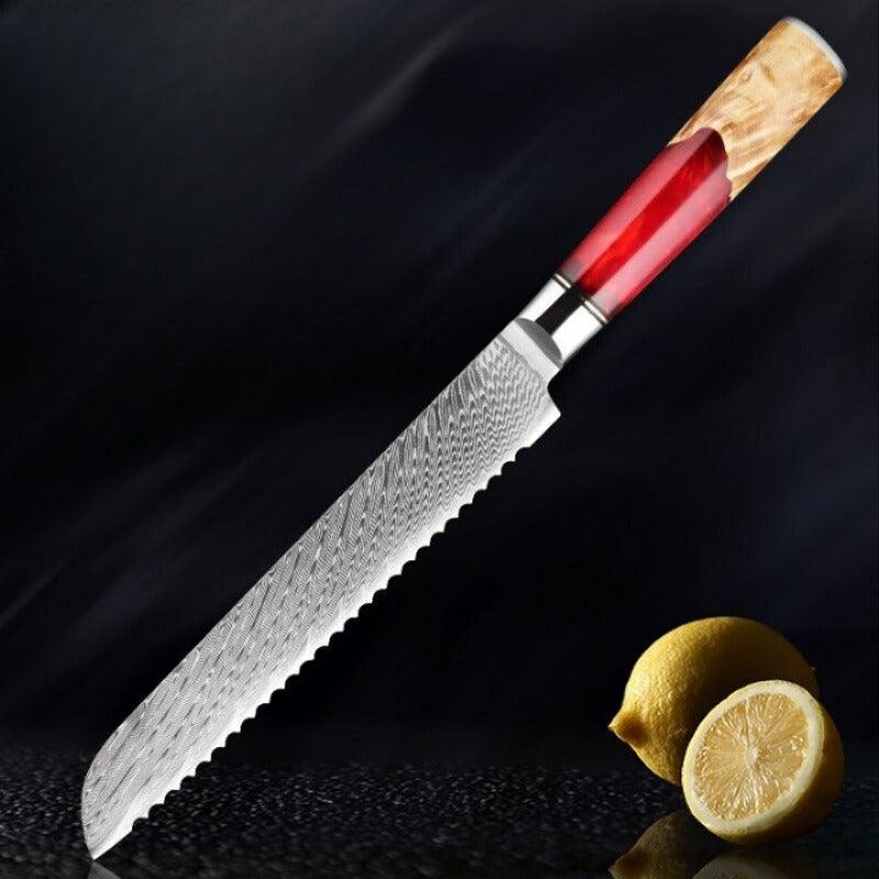 8 Inch Damascus Steel With Resin Handle Bread Knife