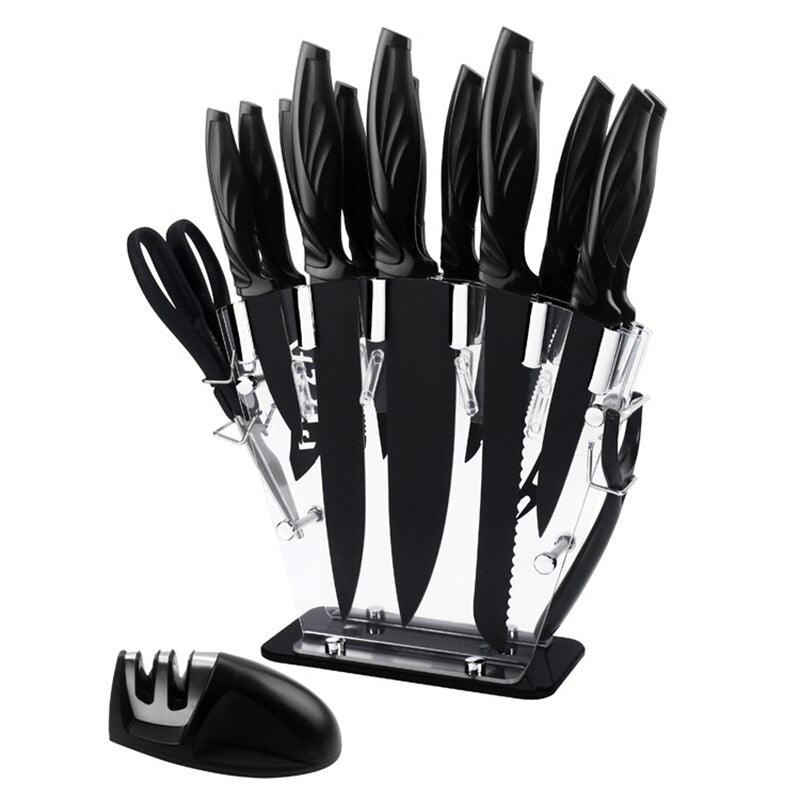 17 Pieces Multipurpose Kitchen Knife Set has everything you need for your kitchen, it comes with a variety of knives, scissors, and peelers as well. All these are made from stainless steel which makes them durable, anti-rust, and lightweight. These all pieces are matt black in color which also enhances their look when kept in set in the kitchen.