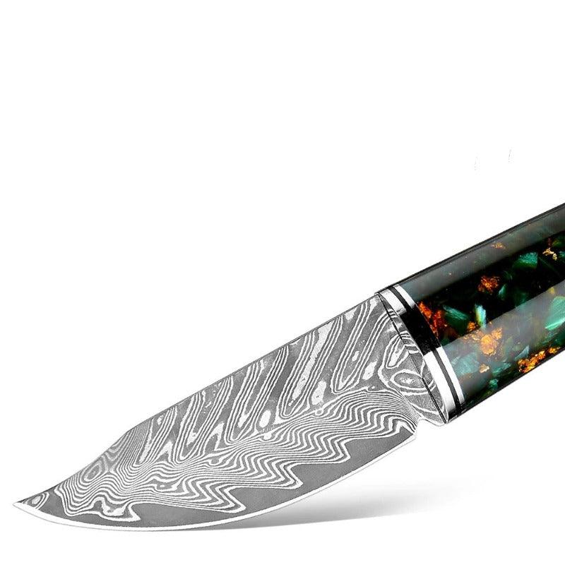 3.5 Inch Damascus Steel Mini Fruit Chef Knife is a perfect knife for cutting fruits as this mini knife has a 7.5 cm long edge with sharp edges along with a colorful wooden handle. It is easy to carry as well and comes along with a sheath to keep its blade safe and sharp.