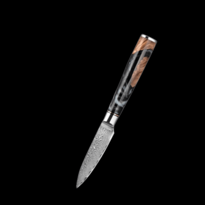 3.5 Inch Fruit Paring Knife is great for household use, as they are made from Damascus steel which makes sit lightweight and of high quality. It is best used for cutting fruits as it is a 3.5 cm long edge with a wooden round handle, to make it easy to use for both left and right-hand users.
