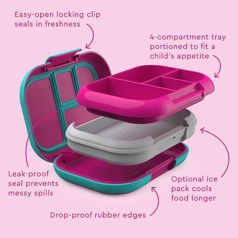 Prepare delightful meals with this 4-Compartment Kids Lunch Box. Crafted from food-grade safe PP, ABS, and TPE materials, it ensures healthy eating for your child. The Fruit or Space themes add a playful touch. Conveniently freezer, microwave, and dishwasher safe, and can be easily hand washed.