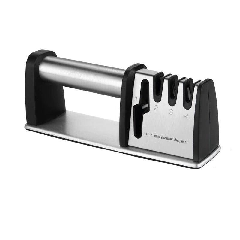 4-In-1 Knife And Scissors Sharpener are made from aluminum material which makes it lightweight. It has 4 stages to sharpening knives or scissors and is easy to use. It comes in different colors and shapes as well, you can choose as per your requirement. It is designed in such a way that it will keep your kitchen scissors and knife sharp.