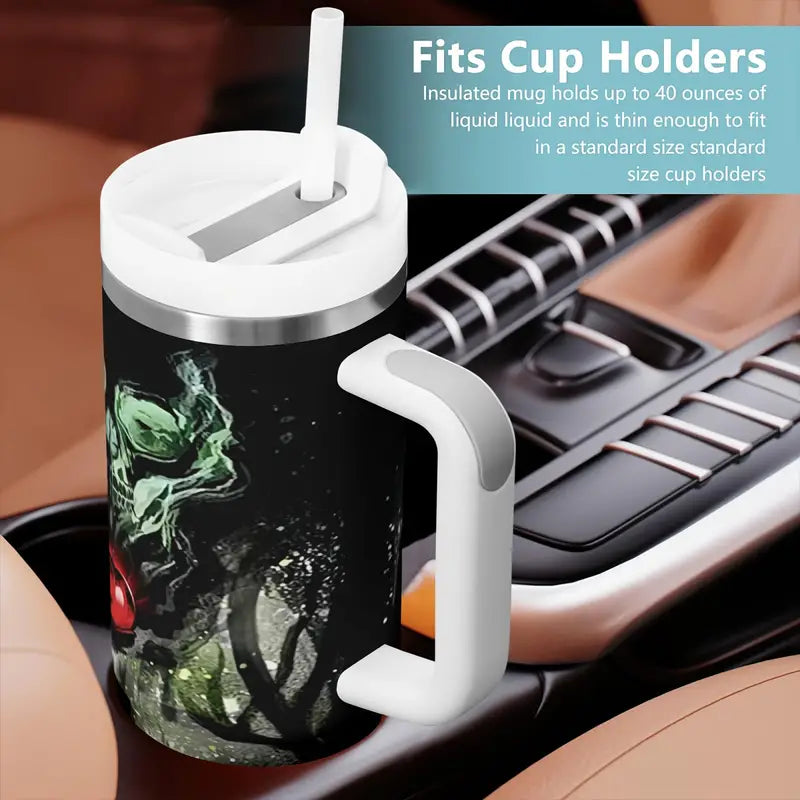 - Design: Features a gripping, dark-themed artwork that wraps seamlessly around the tumbler, creating a visual intrigue that distinguishes it from ordinary drinkware.