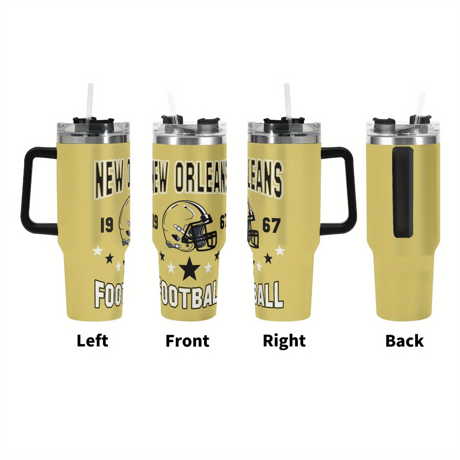 This 40oz New Orleans Saints Football Themed Travel Tumbler offers a practical combination of capacity, insulation performance, and portability. The vacuum-insulated construction supports temperature retention, while the handle improves comfort during transport.