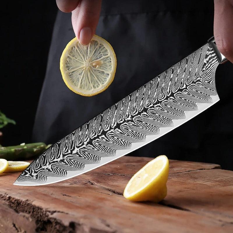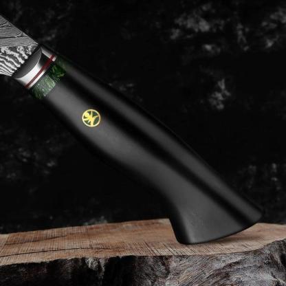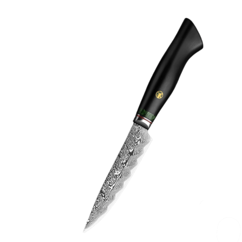 5.5 Inch Steel Utility Knife With Black Ebony Handle has a uniquely designed edge made from Damascus steel, which makes it high-quality, durable, and anti-rust. It has a black color ebony handle with a perfect grip on your finger to give the hold. It is lightweight and its sharp edges make cutting easy.