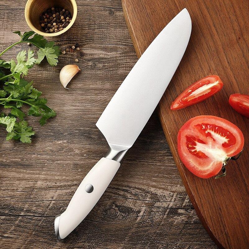 7 Inch BBQ Stainless Steel Santoku Knife cuts faster and cleaner with minimal effort. This BBQ Stainless Steel Knife construction makes it easy to clean, with just a little soap and warm water, and the edge quickly wipes clean ready for next use without any worry of cross-contamination. Easy to use, and comfortable for any chopping, cutting, or butcher tasks, making this a great addition to any professional or high-quality household cutlery.