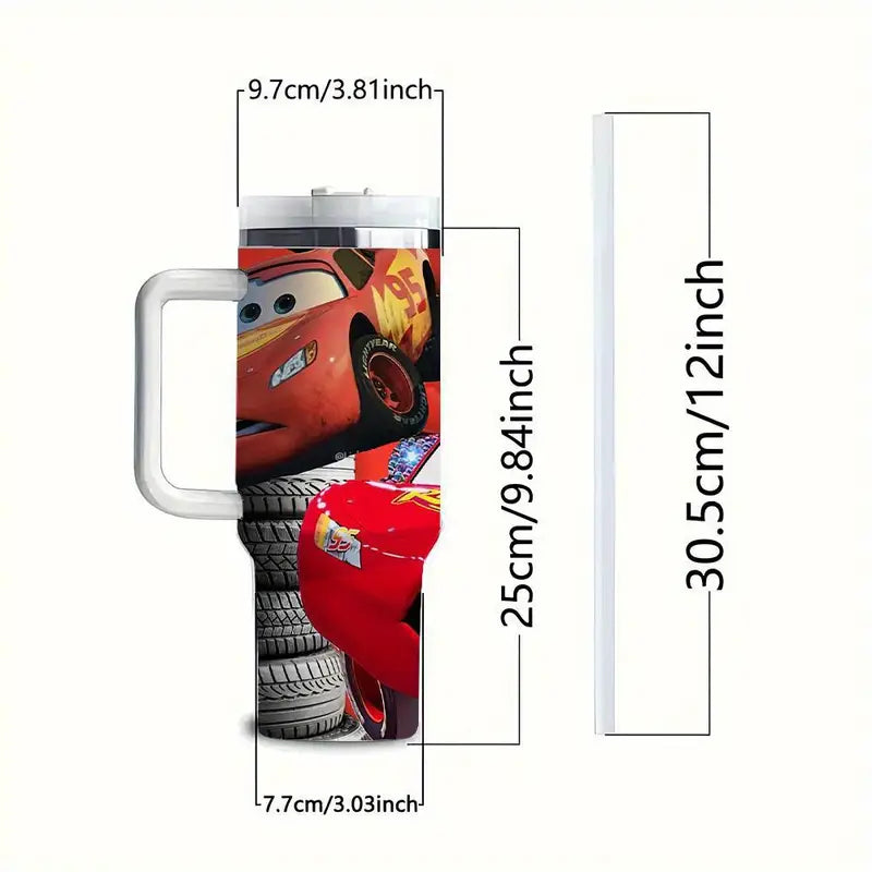 This Cars Edition 40oz Insulated Tumbler is Ideal for keeping your beverages at the right temperature while on the go. Designed with a vibrant car theme, it adds a touch to your daily routine. The tumbler comes with a sturdy handle and a convenient straw lid, making it easy to carry and sip from, whether you're working at your desk or out on an adventure.