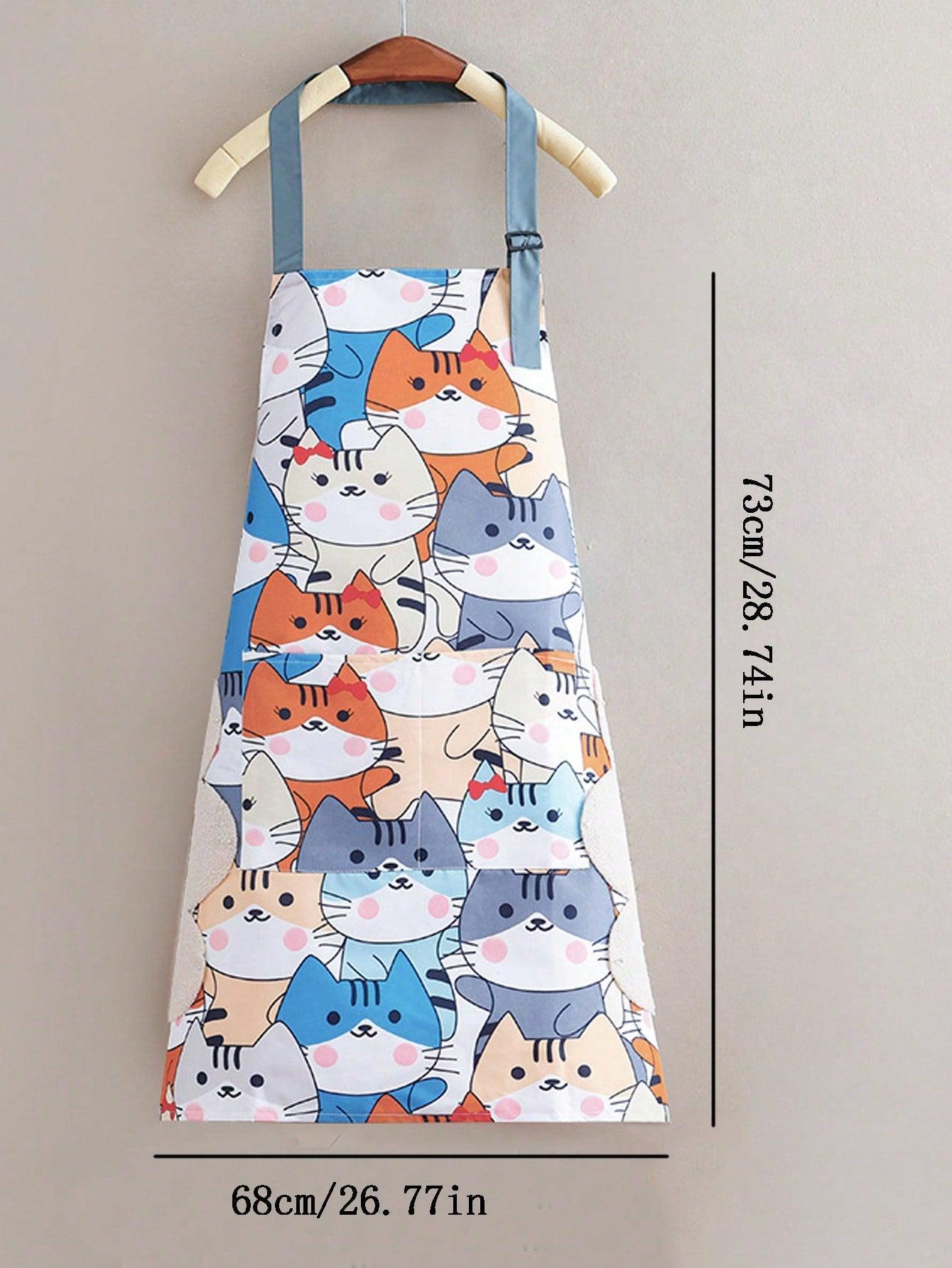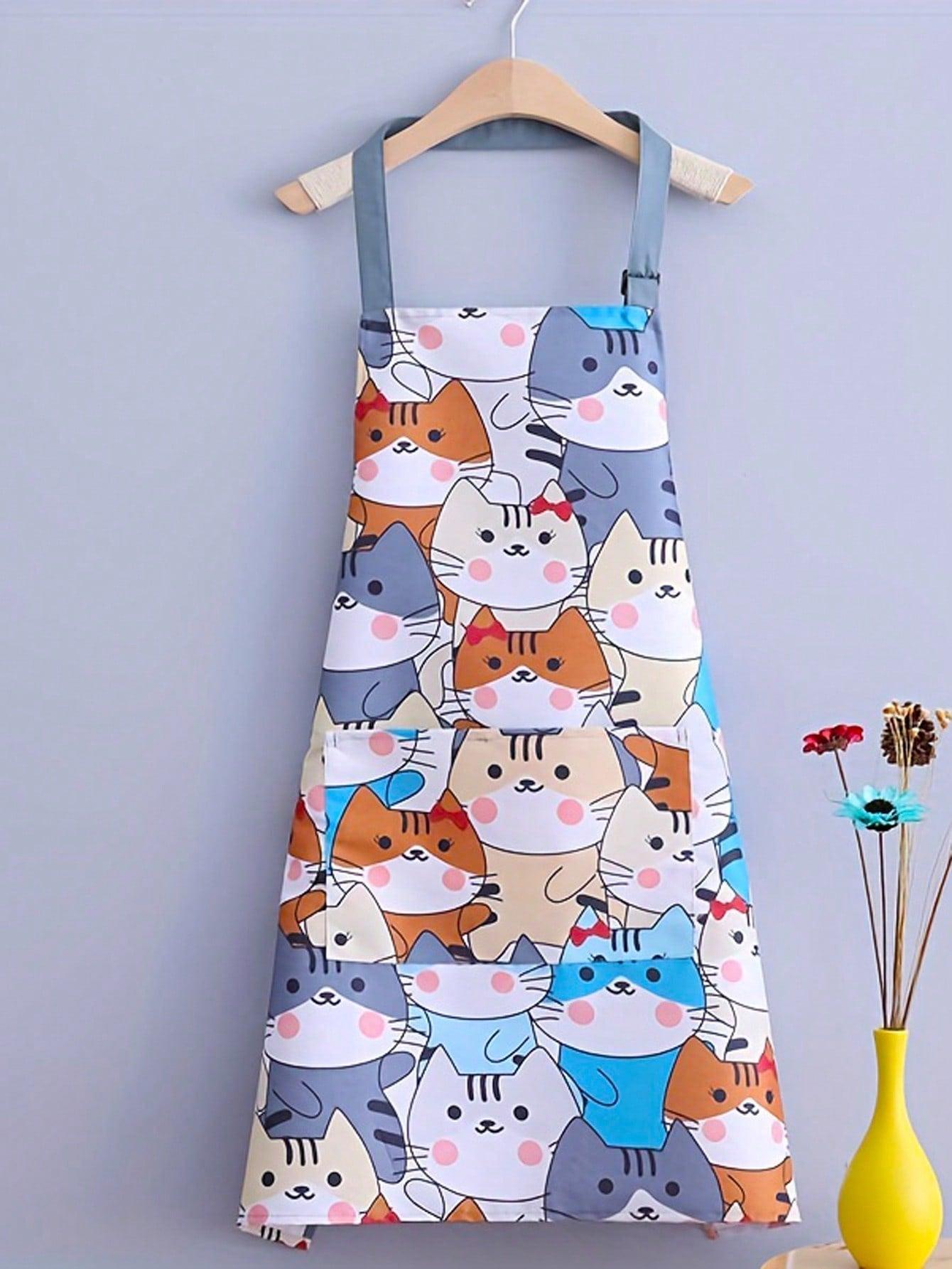 Add a touch of fun to your kitchen with this Cartoon Cat Print Apron! This lightweight and comfortable apron features an adorable cat print that's sure to bring a smile to you. It's perfect for cooking, baking, barbecuing or just making messes in the kitchen.