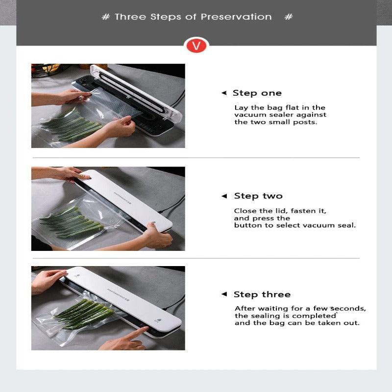 Introducing the Electric Sealing Machine, your ultimate companion for food preservation and storage. This electric-powered machine offers the convenience of vacuum sealing, ensuring that your food stays fresh for longer periods. Equipped with a vacuum bag feature, this sealing machine creates an airtight seal that locks in the flavors, nutrients, and freshness of your food.