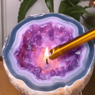 Bring elegance and serenity to your space with this radiant geode-inspired candle, perfect for enhancing any decor.