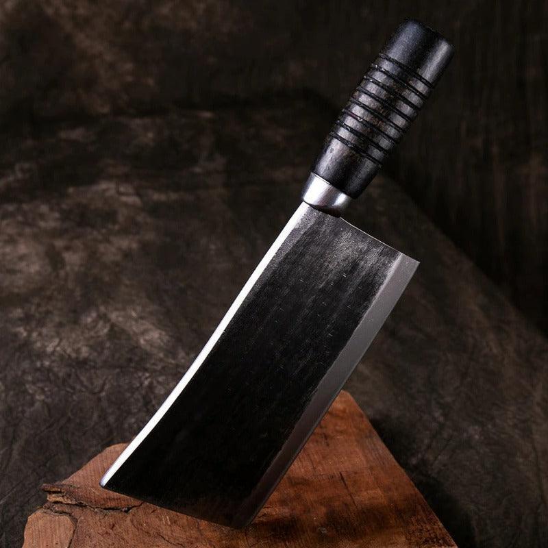 Handmade Forged Stainless Steel Cleaver Knife has a rectangular shape edge with razor-sharp edges making it perfect to cut food items like meat or fish. It has black color round wood handle to give a great grip and hold and is used by butchers to cut hard meat.