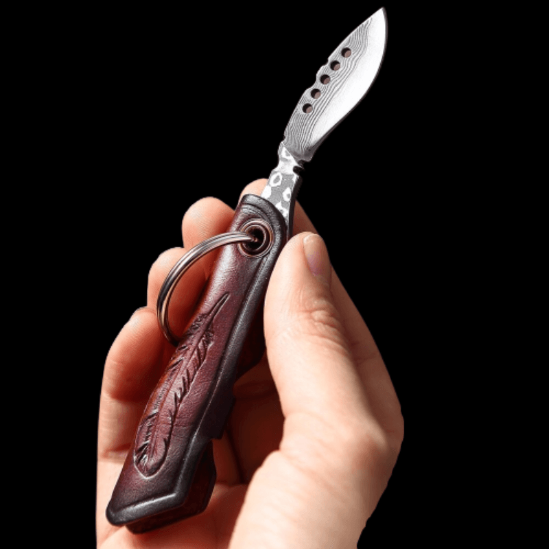 Key Pocket Folding Mini Sharp Razor Paring Knife is perfect to carry along anywhere as these are small in size and comes with a leather sheath which keeps it safe and makes it look stylish as well. It has an edge made from Damascus steel which makes it sharp and lightweight too.