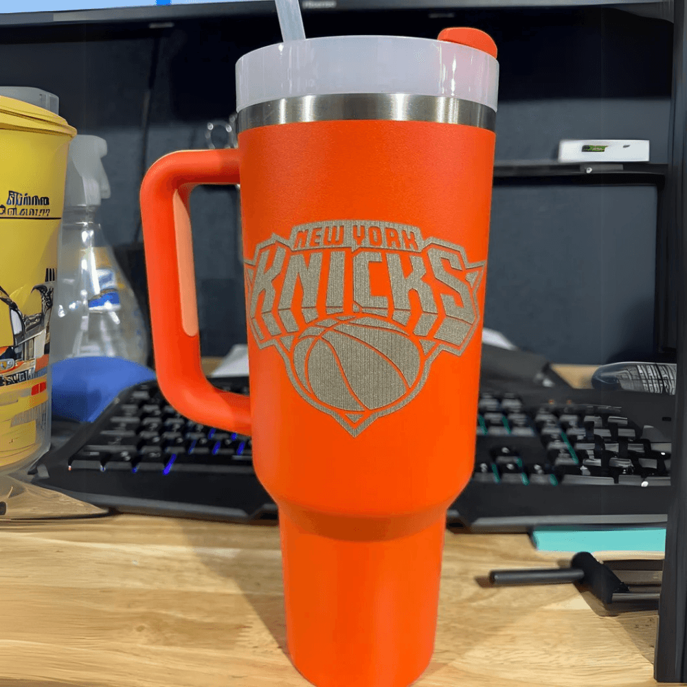 Support your Greatness with the New York Knicks Insulated Tumbler featuring a straw lid! Designed with the iconic Knicks logo and vibrant team colors, it's a must-have for fans. The double-wall vacuum insulation keeps beverages hot or cold for hours, while the secure straw lid allows for effortless, spill-free sipping. With an ergonomic handle for a comfortable grip, this tumbler is great for travel, game days, or everyday hydration.