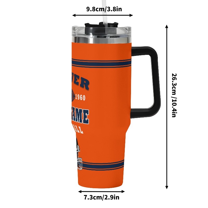This Personalized Denver Broncos football-themed travel Mug works well within customized merchandise ranges, gift catalogs, and lifestyle collections focused on personalization rather than licensing. Its neutral theme allows broad market compatibility, making it a flexible option for sellers and buyers seeking practical, customized hydration solutions for daily routines.