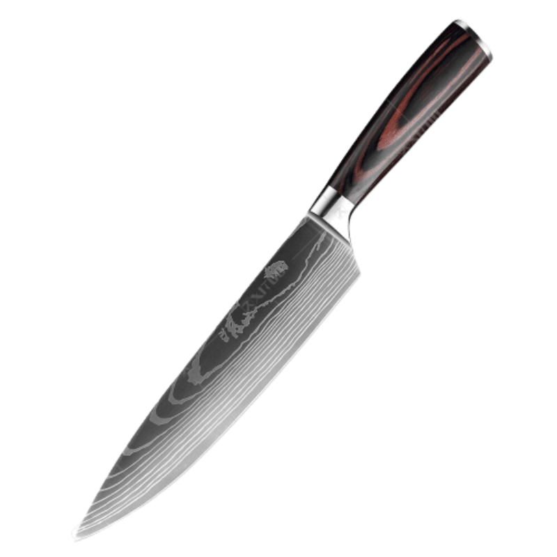 Premium Japanese Kitchen Knife Sets come with a premium stainless steel blade, non-slip handle, and protective blade guard, this kitchen knife set is going to be an eye-catching centerpiece in your kitchen. This knife is well suited to slicing vegetables and fruits. It is also capable of paring skins very finely. The pointed tip can remove lemon seeds easily.