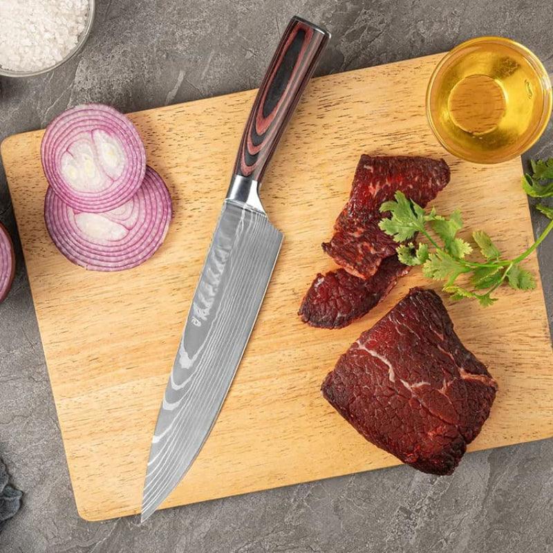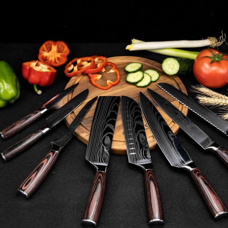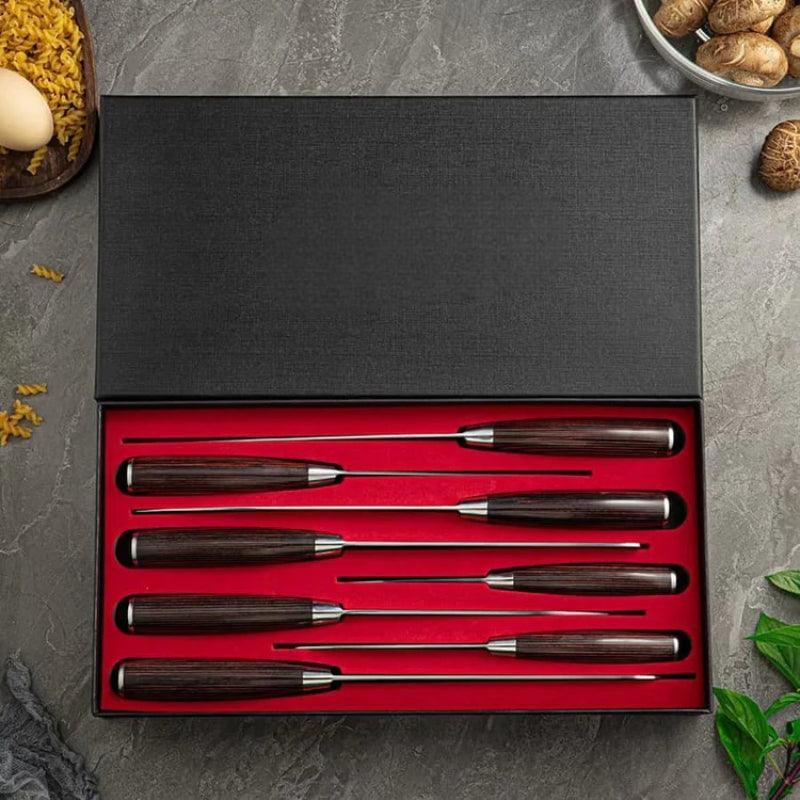 Experience the finesse of Japanese culinary art with our Japanese Master Chef Knife Set. Each piece in this premium set is crafted for exceptional precision, offering a balance of sharpness, durability, and ergonomic design. Ideal for professional chefs and cooking enthusiasts, these knives cater to a range of kitchen tasks, from delicate slicing to robust chopping. A testament to traditional craftsmanship and modern functionality, this set is a prized addition to any kitchen.