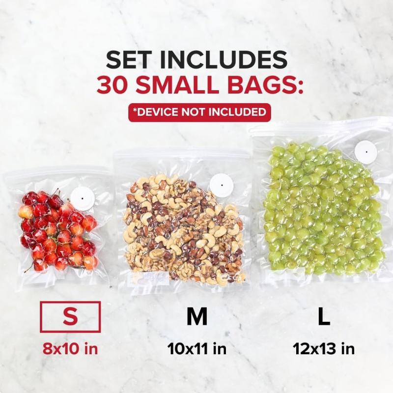Reusable Vacuum Sealer Bags For Storage are versatile and can be used for multiple purposes, including sous vide cooking, meal prepping, or simply storing food in the freezer. With their leak-proof design, these bags offer for all your food storage needs. The 30-pack of small (8 x 10 in) bags makes it easy to store different food sizes and types, helping reduce food waste and save money in the long term.