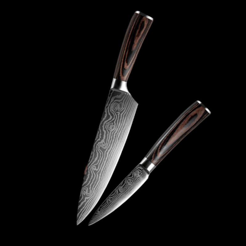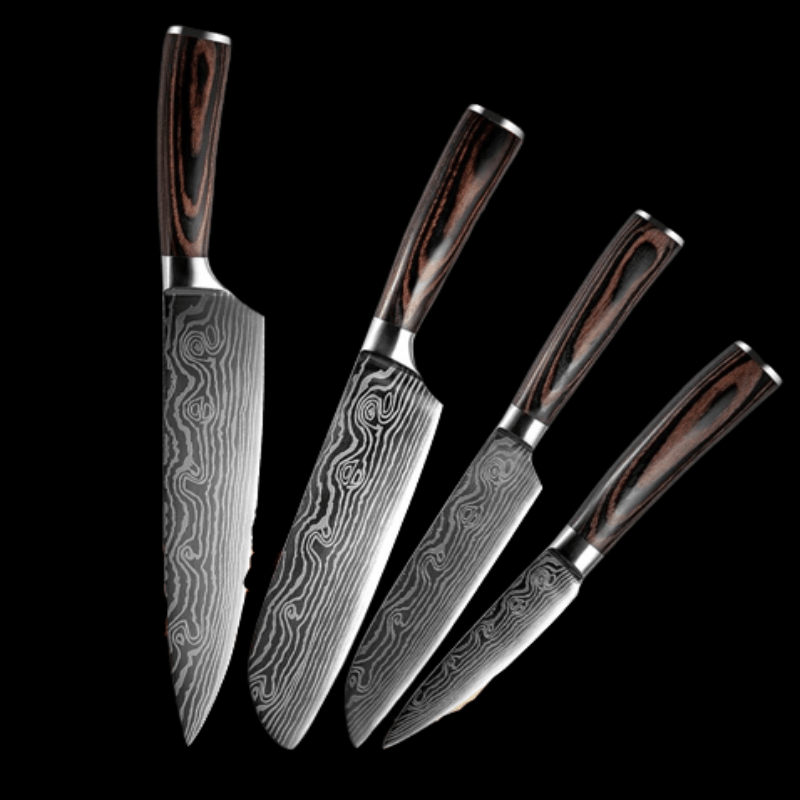 Stainless Steel Kitchen Color Wood Knife Set with different types of knives with different edge lengths, all made from stainless steel these knives are anti-rust and durable. Along with a wooden handle that is round in shape to make the hold easy for both left and right-hand users.