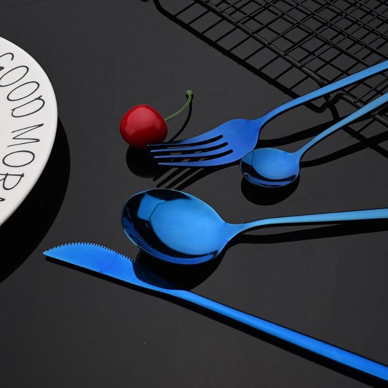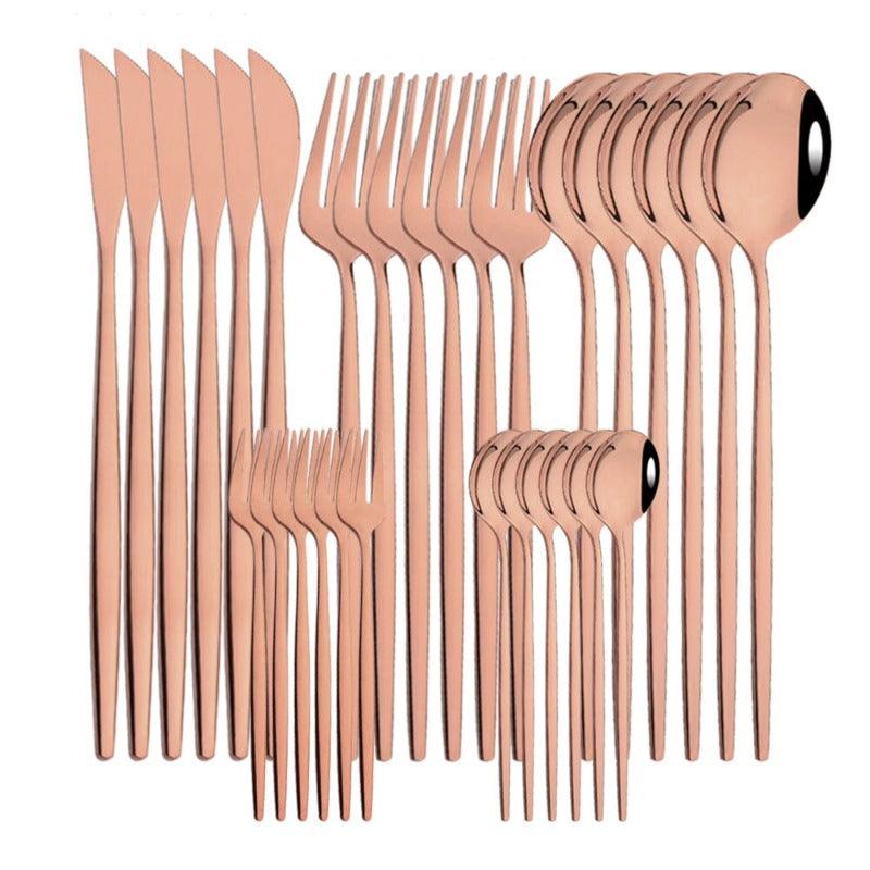 Steel Dinnerware Set is high-quality dinnerware. Crafted with eco-friendly stainless steel, this set showcases stunning pigmented technics, creating a luxurious gold finish that instantly elevates your dining experience. With a solid pattern and Western styling, these pieces exude elegance and sophistication. The set includes spoons, forks, and knives, providing a complete dinnerware collection for your convenience. Made from durable stainless steel, these pieces are built to last, ensuring long-lasting enjoyment.
