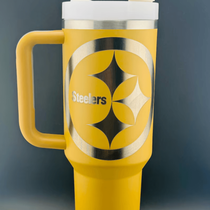 Show your team spirit with this Steelers-themed insulated tumbler! Crafted from greatness stainless steel, it showcases a bold and vibrant Steelers design, making it a must-have for dedicated fans. The double-wall vacuum insulation keeps drinks hot or cold for hours, while the secure flip straw lid ensures spill-free sipping. Designed with an ergonomic handle for easy portability, it's perfect for game days, workouts, or everyday hydration.