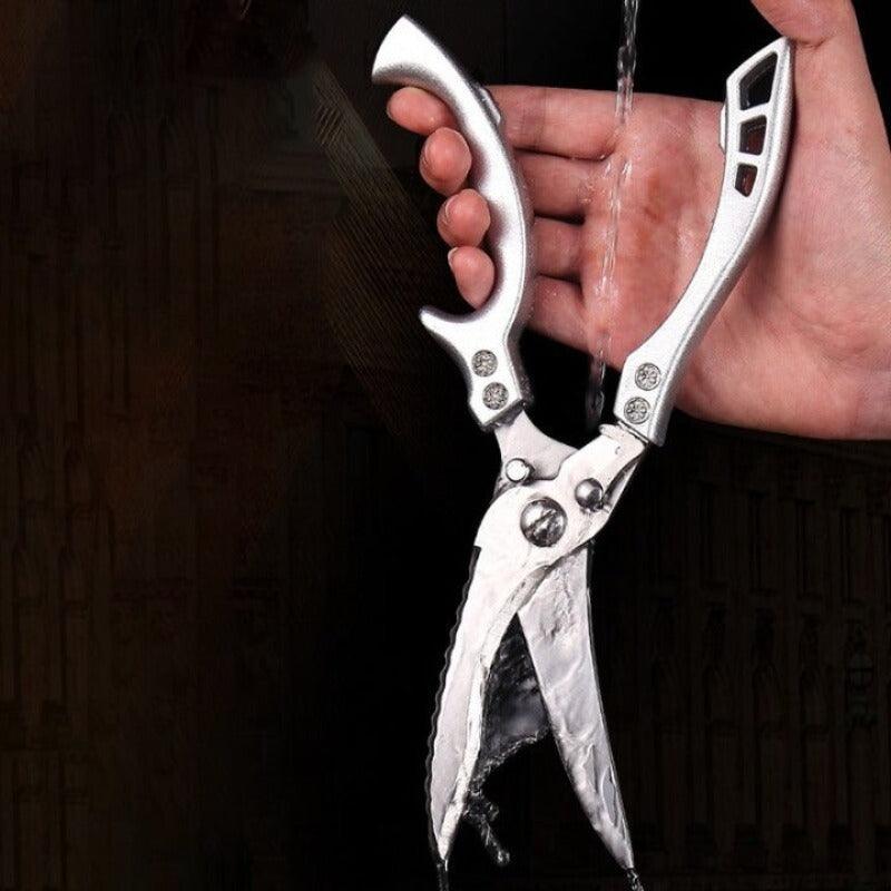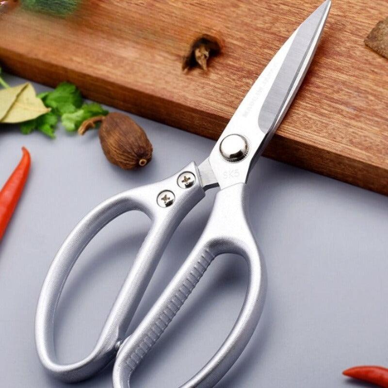 Super Sharp Kitchen Stainless Steel Scissors are uniquely designed scissors, especially for kitchen use. It can cut hard meat or vegetables easily, and its handles are designed in such a way that they will give you a good hold be it a closed or open handle it will make your work easy. It is made from stainless steel and has sharp edges.
