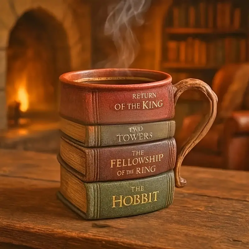 The Hobbit And Lord of the Rings Inspired Book Mug For Collectors combines artistic drinkware with a literary theme, creating a distinctive mug for readers and collectors. Styled to resemble stacked books, it immediately evokes a rich bookish atmosphere perfect for morning coffee, tea breaks, or as décor in your favored reading spot. This literary theme coffee mug is ideal for home use, office desks, cafés, and bookshops.