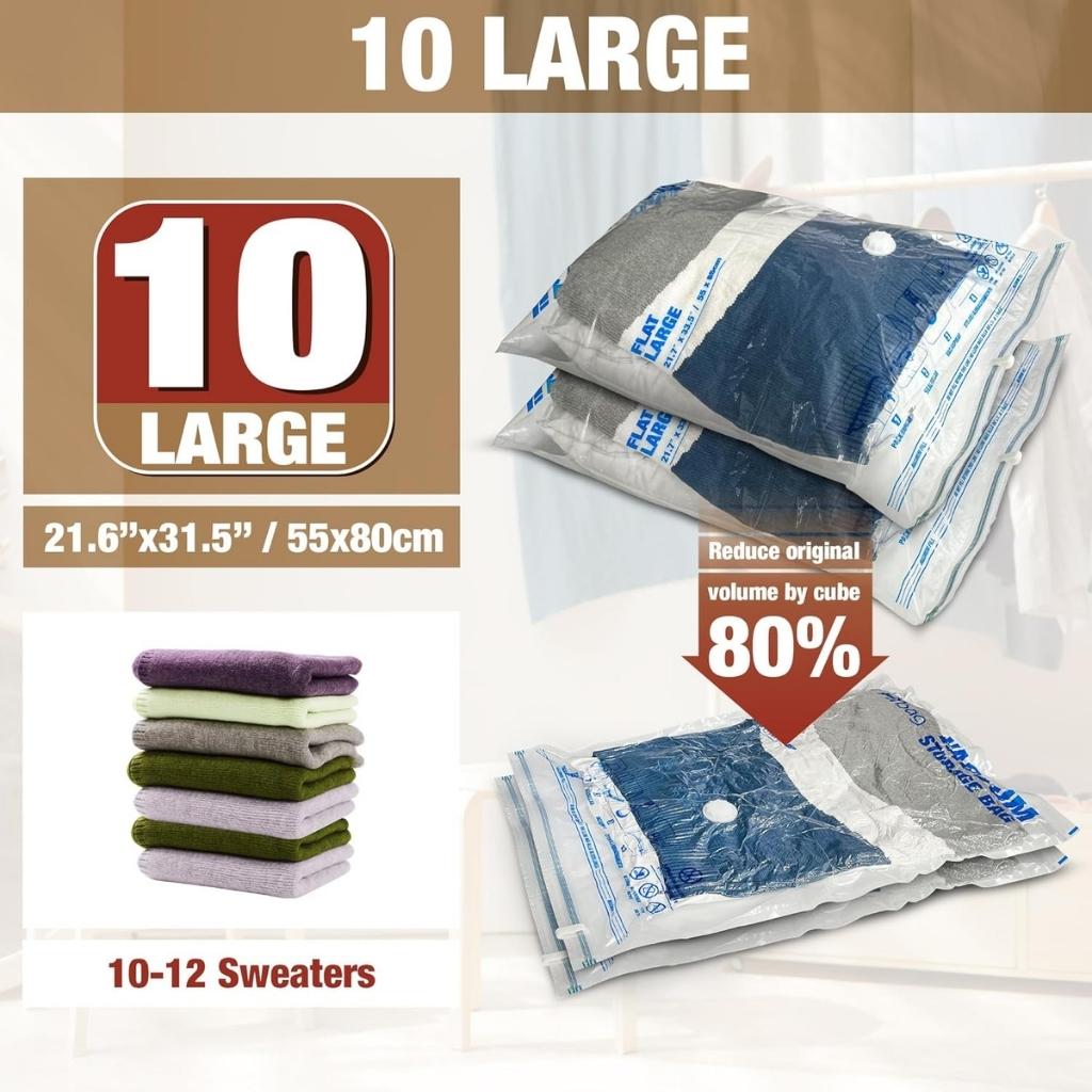 This set of 10 jumbo space saver bags is versatile enough to meet multiple storage needs, from seasonal wardrobe changes to reducing suitcase bulk during vacations. By compressing items by up to 80%, these bags simplify organization and keep fabrics neatly stored for future use. A practical solution for anyone seeking to declutter and optimize storage spaces at home or on the go.