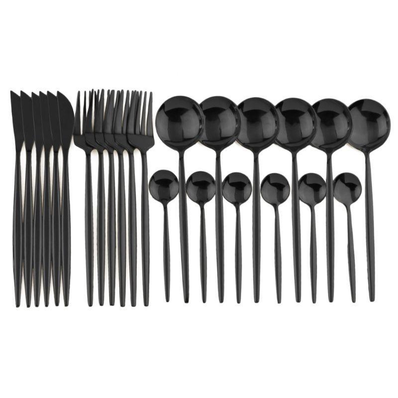 Introducing the Western Dinnerware Set, a stunning and eco-friendly addition to your dining experience. This stocked set includes 24 pieces of high-quality stainless steel flatware, perfect for elevating your table setting with a touch of elegance. With its solid pattern and sleek black design, this dinnerware set exudes a modern and sophisticated style. The good mirror polishing process ensures a flawless finish, adding a luxurious shine to each piece.